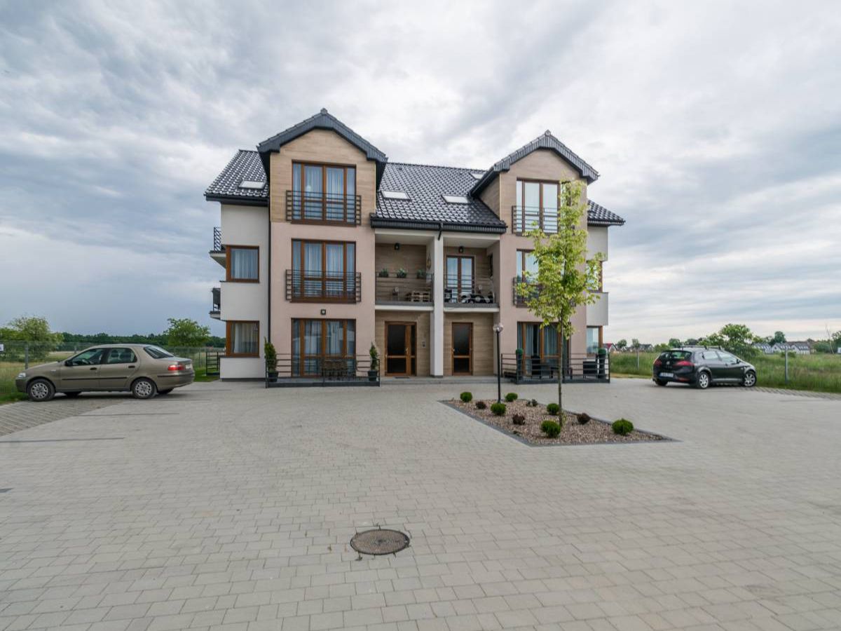 Przed budynkiem znajduje się parking. Obiekt jest ogrodzony, a z tyłu w ogrodzie znajduje się miejsce przeznaczone do grillowania oraz huśtawka dla dzieci.