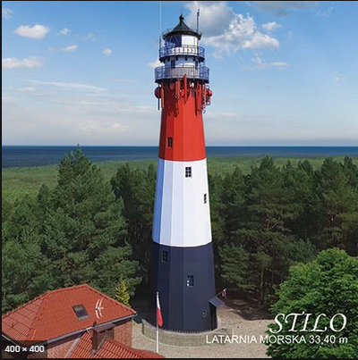 Znajduje się około 10km na wschód od Łeby, można do niej dojść plażą lub dojechać rowerem lub samochodem. Latarnia ma 33,4m wysokości i jest charakterystyczną budowlą o kształcie ściętego ostrosłupa, na szesnastokątnej podstawie. Latarnia pomalowana jest w trzy charakterystyczne pasy – czarny u dołu, biały pośrodku i czerwony na górze. U szczytu latarni znajdują się dwie galerie widokowe i laterna, do której nie ma dostępu. Latarnia Stilo została zbudowana na początku XX wieku i odznaczała się bardzo nowoczesną, jak na tamte czasy, techniką budowy – stalowe elementy połączono śrubami, co jest doskonale widoczne wewnątrz budynku.